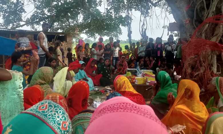 गोड्डा/मेहरमा : प्रखंड क्षेत्र अंतर्गत सुखाड़ी गांव स्थित शोभापुर के शीतला माता स्थान में माता शीतला का धूमधाम के साथ वार्षिक पूजन किया गया। जहां पारंपरिक विधि-विधान के साथ माता शीतला को गाय के दूध से निर्मित खीर का प्रसाद के रूप में भोग लगाया गया। श्रद्धालुओं व महिलाओं द्वारा माता शीतला के गीतों से माहौल भक्तिमय हो गया। वहीं इस वार्षिक पूजन के बारे में मौजूद स्थानीय लोगों ने बताया कि हर वर्ष माता शीतला का वार्षिक पूजन किया जाता है।पूरे ग्रामीणों के सहयोग से मां को खीर प्रसाद का भोग लगाया जाता है। मां शीतला सभी की मनोकामनाएं पूर्ण करती है एवं भक्तों के कष्टों को दूर करती है।वहीं इस मौके पर श्रद्धालुओं व स्थानीय लोगों की भीड़ उमड़ पड़ी।