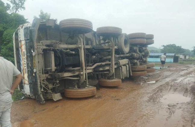 Stone loaded vehicle overturned, driver narrowly escaped