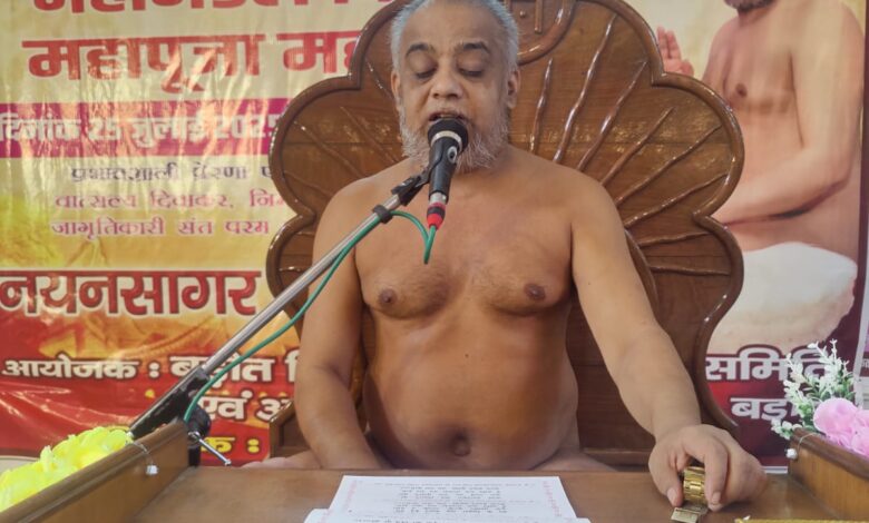 आज के आयोजन में सो धर्म इंद्र बनने का सौभाग्य मनोज जैन (पेट्रोल पंप वाले) को प्राप्त हुआ। इस अवसर पर आचार्य श्री 108 नयन सागर मुनिराज ने उपस्थित श्रद्धालुओं को संबोधित करते हुए कहा: