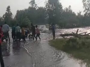 अमरोहा में बान नदी में पुल डूबा