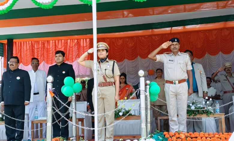 एसपी निधि द्विवेदी ने पुलिस केन्द्र में किया झंडोत्तोलन