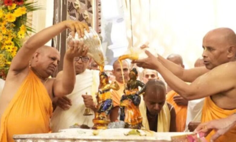 मथुरा। वृंदावन में श्रीकृष्ण बलराम इस्कॉन मंदिर में जन्माष्टमी पर देश-विदेश से आए हजारों श्रद्धालु कृष्ण जन्म के आनंद में सराबोर दिखाई दिए। मंदिर में दिव्य विग्रह का अभिषेक किया गया। सुबह से ही मंदिर प्रांगण में भक्तों का सैलाब उमड़ पड़ा। अमेरिका, ब्रिटेन, रूस, फ्रांस, ऑस्ट्रेलिया, कनाडा, वियतनाम, न्यूजीलैंड जैसे कई देशों से आए भक्तों ने भी पारंपरिक परिधान में भाग लेकर आयोजन को अंतरराष्ट्रीय स्वरूप प्रदान किया। रात्रि में कृष्ण-बलराम के श्रीविग्रह का गो-दुग्ध, दही, घी, शहद, गंगाजल और विभिन्न फलों के रसों से विधिवत अभिषेक किया गया। भक्तजन नृत्य करते हुए अपने आराध्य के जन्मोत्सव में मग्न रहे। मंदिर के अध्यक्ष पंच गौड़ा दास, मुख्य वित्त अधिकारी एचएच जनार्दन स्वामी और रविलोचन दास समेत अन्य ने सभी व्यवस्थाओं को बखूबी संभाला।