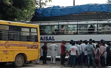 अमरोहा में स्कूली बस को डग्गामार वाहन ने मारी टक्कर