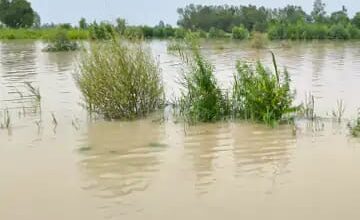 अमरोहा में खेतों में भरा बाढ़ का पानी