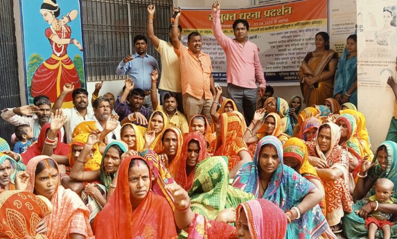 बाढ़ पीड़ित परिवारों को राहत सामग्री देने हेतु मुखिया/ प्रमुख/ उपप्रमुख/ पं. समिति व वार्ड सदस्य सहित ग्रामीणों ने प्रखण्ड कार्यालय के समक्ष दिया धरना