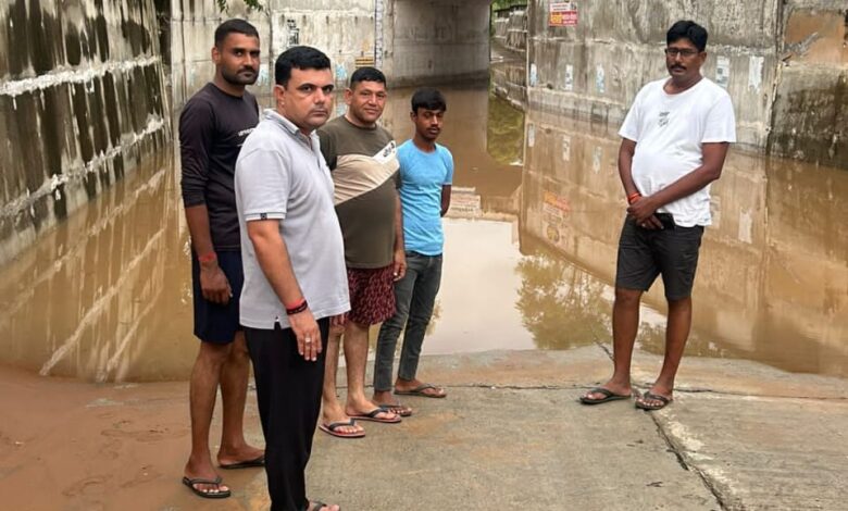 रीगंस के पास कोटडीधायलान रोड पर कोसा बोझा स्कूल के पास जयपुर रेल लाइन के अण्डरपास में तीन दिन से भरा है 5 फुट पानी