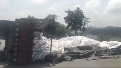 मुडवानी डैम के पास आईडीएल कंपनी का बस्फोटक रॉ मेटेरियल लेकर जा रहा ट्रक पलटा