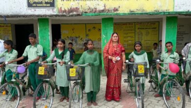 मुखिया के द्वारा आठवीं में पढ़ने वाले बच्चों के बीच किया गया मुफ्त साइकिल वितरण