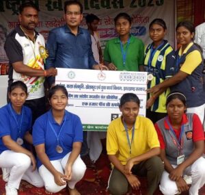 गोड्डा। बायोडायवर्सिटी पार्क में पर्यटन कला, संस्कृति, खेल-कूद एवं युवा कार्य विभाग द्वारा  राष्ट्रीय खेल दिवस के अवसर पर विभिन्न खेल प्रतियोगिताओं का आयोजन किया गया। कार्यक्रम की शुरुआत जिला दंडाधिकारी सह उपायुक्त अंजली यादव द्वारा किया गया। दौरान मेजर ध्यानचंद की तस्वीर पर पुष्प अर्पित कर दीप प्रज्वलित कर भी किया गया। दौरान उपायुक्त ने खिलाड़ियों से बातचीत करते हुए उनका मनोबल बढ़ाया और बेहतर भविष्य को लेकर सभी को शुभकामनाएं दी। कहा कि हमारे जीवन में खेलों का बड़ा महत्व होता है। मनुष्य के स्वस्थ शरीर और दिमाग को विकसित करने के लिए खेल महत्वपूर्ण भूमिका निभाते हैं। खेल कई प्रकार के होते हैं, जो हमारे शारीरिक के साथ मानसिक विकास में मदद करते हैं। खेलों के जरिए तनाव को आसानी से दूर किया जा सकता है। दुनियाभर में अलग-अलग तारीख को खेल दिवस मनाया जाता है। भारत में हर साल 29 अगस्त को हॉकी के जादुगर मेजर ध्यानचंद की जयंती पर राष्ट्रीय खेल दिवस मनाया जाता है। उन्होंने खिलाड़ियो को खेल भावना के साथ-साथ अनुशासित तरीके से खेलते हुए एक उदाहरण पेश करने की बात कही। उन्होंने सभी खिलाड़ियों को अपने खेल में बेहतर प्रर्दशन करने को लेकर बधाई व शुभकामनाएं दी। उपायुक्त एवं खेल पदाधिकारी के द्वारा बेहतर प्रदर्शन करने वाले खिलाड़ियों एवं प्रशिक्षकों को  पुरस्कृत किया गया। दौरान उपविकास आयुक्त  दीपक कुमार दूबे, डिविजनल फॉरेस्ट ऑफीसर पवन बाघ, अनुमंडल पदाधिकारी, बैद्यनाथ उरांव, जिला खेल पदाधिकारी डॉ. प्राण महतो, अल्पसंख्यक आयोग के उपाध्यक्ष प्रणेश सोलोमन, सदस्य हाजी इकरारुल हसन एवं खेल संघ के सचिव सुरजीत झा उपस्थित थे।