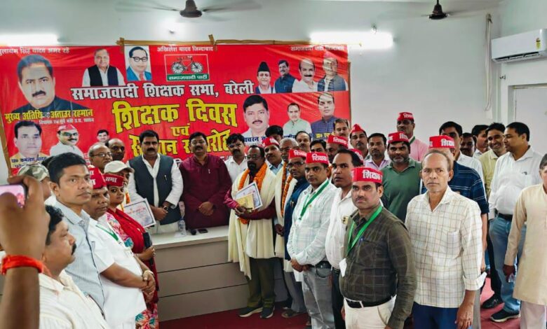 बरेली : समाजवादी पार्टी कार्यालय, मिशन कम्पाउंड सिविल लाइंस बरेली में शिक्षक दिवस बड़े उत्साह के साथ मनाया गया। कार्यक्रम की अध्यक्षता जिला अध्यक्ष शिव चरन कश्यप ने की तथा मुख्य अतिथि के रूप में प्रदेश महासचिव एवं विधायक अता उर रहमान मौजूद रहे।मुख्य अतिथि अता उर रहमान ने कहा कि शिक्षक ही समाज का वास्तविक मार्गदर्शक होता है। आज शिक्षा को बाज़ारवाद से बचाकर समाज और राष्ट्र के निर्माण में योगदान देना हम सबकी जिम्मेदारी है शिक्षक ही एक समाज का अंधकार मिटा कर प्रकाश की ओर ले जता है गुरु से बड़ा कोई नहीं होता ।जिला अध्यक्ष शिव चरन कश्यप ने कहा कि समाजवादी पार्टी सदैव शिक्षा और शिक्षकों के सम्मान की पक्षधर रही है। जिला उपाध्यक्ष रविंद्र सिंह यादव ने कहा कि आज जरूरत है कि शिक्षक अपने ज्ञान और नैतिकता से नई पीढ़ी को सशक्त बनाएँ और शिक्षा को समाज में बराबरी का हथियार बनाएं। राष्ट्रीय उपाध्यक्ष सुरेंद्र सोनकर ने कहा कि समाजवादी पार्टी का स्पष्ट मानना है कि बिना शिक्षकों के सम्मान के, और बिना गुणवत्तापूर्ण शिक्षा के समाजवाद की बुनियाद मजबूत नहीं हो सकती। समाजवादी पार्टी ने 5 सेवानिवृत्त शिक्षकों सम्मान किया जिसमें अमर सिंह कश्यप, राम प्रसाद कठहरिया,गयादीन यादव अतहर अली ,सीता राम बेलदार रहे कार्यक्रम के आयोजक शिक्षक सभा के जिलाध्यक्ष हृदेश यादव, महानगर अध्यक्ष के पी राठौर कार्यक्रम का संचालन शिक्षक सभा जिला उपाध्यक्ष पल्लवी सक्सेना ने किया !