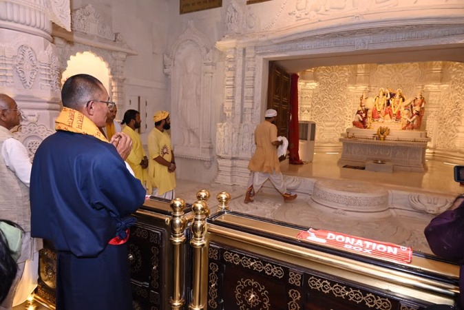भूटान के पीएम सुबह 10:00 बजे राम मंदिर पहुंचे। करीब एक घंटे 40 मिनट के राम मंदिर प्रवास में उन्होंने रामलला और राम दरबार के दर्शन किए। इसके साथ ही कुबेर टीला, जटायु और सप्त मंडपम के मंदिरों में भी दर्शन पूजन किया। उन्होंने लोअर प्लिंथ के चारों ओर लगने वाले म्यूरल के साथ परकोटा की दीवार पर लगने वाले ब्रांज के म्यूरल को भी निहारा।
