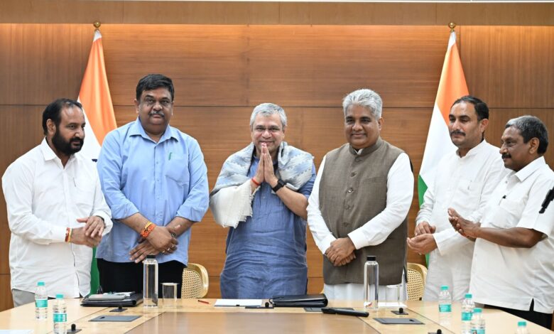 अलवर/खैरथल-तिजारा। केंद्रीय पर्यावरण, वन एवं जलवायु परिवर्तन मंत्री एवं अलवर सांसद भूपेंद्र यादव एवं केंद्रीय विद्यालय रेल मंत्री अश्वनी वैष्णव कि की अध्यक्षता में शुक्रवार को रेलवे भवन दिल्ली में बैठक आयोजन किया गया। बैठक में अलवर लोकसभा क्षेत्र के अलवर, खैरथल, राजगढ़, रामगढ़ व गोविंदगढ़ के सर्व समाज के प्रतिनिधि मंडल ने वन मंत्री भूपेंद्र यादव की अगुवाई में रेल मंत्री अश्विनी वैष्णव का खैरथल-तिजारा एंव अलवर में नये आधुनिक रेलवे स्टेशन बनवाने, नई ट्रेन के ठहराव शुरू कराने जैसे अनेक सौगाते देने पर अभिनन्दन कर आभार जताया।