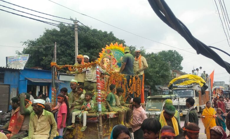 गणपति महाराज की हुई विदाई शोभा यात्रा के रूप में ले जाकर रामगंगा नदी में किया विसर्जित