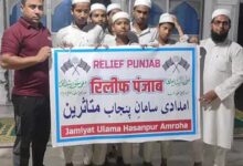 पंजाब में बाढ़ से प्रभावित लोगों की मदद के लिए अमरोहा के हसनपुर से जमीयत उलेमा हिन्द ने राहत सामग्री भेजी है। पंजाब के कई इलाकों में बाढ़ का पानी घरों में घुस गया है। लोगों के पास खाने-पीने का सामान भी नहीं बचा है।जमीयत उलेमा हिंद के जिला सदर मुफ्ती खुर्शीद अहमद नक्शबंदी की अगुवाई में सोमवार को राहत सामग्री से भरा कैंटर रवाना किया गया। जमीयत के नगर अध्यक्ष कारी इरशाद अहमद ने बताया कि राहत सामग्री में रोजमर्रा की जरूरी चीजें शामिल हैं।राहत सामग्री में डायपर, मच्छरदानी, तिरपाल और बच्चों के कोलगेट भेजे गए हैं। इसके अलावा महिलाओं के सूट, पुरुषों के कुर्ते और बच्चों के कपड़े भी शामिल हैं। खाने-पीने के सामान में बिस्किट, रिफाइंड तेल, आचार, नमकीन, आटा और चावल भेजे गए हैं। साथ ही अगरबत्ती, माचिस, चादर, छतरी और पानी की बोतलें भी राहत सामग्री में शामिल हैं।