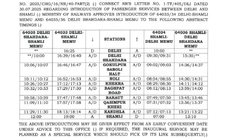 नई MEMU सेवा शुरू होने से दिल्ली से शामली और पश्चिमी उत्तर प्रदेश के यात्रियों को बड़ी राहत मिलने की उम्मीद है