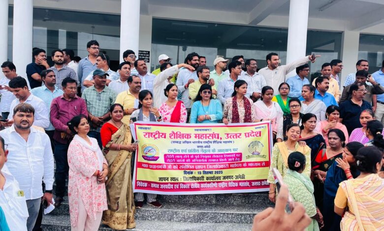 उत्तर प्रदेशीय जूनियर हाईस्कूल शिक्षक संघ की अगुवाई में हुआ रोड मार्च