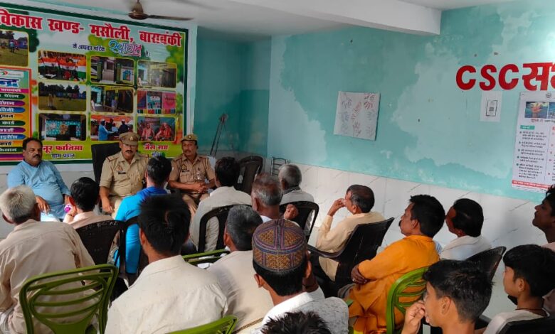 बाराबंकी। मसौली पुलिस ने शुक्रवार को कस्बा बड़ागांव, बांसा में चौपाल लगाकर ग्रामीणों से अफवाहों पर ध्यान न देने की अपील की। पंचायत भवन बड़ागांव स्थित सीएससी सभागार मे उपस्थित ग्रामीणों से रूबरू होते हुए उपनिरीक्षक शिवकुमार ने कहा कि रात्रि में संदिग्ध ड्रोन उड़ने या अजनबी व्यक्ति मिलने पर तुरंत पुलिस व डायल 112 को सूचना दें उन्होंने कहा कि अफवाह फैलाने वालों पर सख्त कार्रवाई होगी और किसी भी अजनबी को चोर समझकर मारपीट न करें। क्योकि इन दिनों अफवाहों ने लोगों में भय और असुरक्षा का माहौल पैदा कर दिया. स्थिति को नियंत्रित करने के लिए पुलिस ने त्वरित तैयार है। उपनिरीक्षक शिवकुमार ने कहा कि आप सभी लोग पुरी तरह सुरक्षित है किसी बातो पर ध्यान न दे यदि ऐसी कोई समस्या आती है डायल 112 या मसौली पुलिस को सूचना दे।