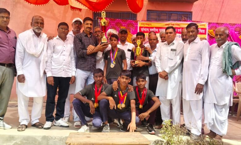 सीकर आभावास। राजकीय वरिष्ठ उपाध्याय संस्कृत विद्यालय 35 MOD हनुमान गढ़ में सम्पन्न हुई सम्पन्न , दल प्रभारी राजेश कुमार फोगावट एवं शारीरिक शिक्षक नरेंद्र कुमार किन्ना ने बताया कि 14 वर्षीय संभाग स्तरीय क्रिडा प्रतियोगिता में वरिष्ठ उपाध्याय संस्कृत विद्यालय खण्डेला ने बनाया लहराया परचम, बैडमिंटन में 5 गोल्ड मेडल प्राप्त करते हुए फाइनल विजेता रहे। 100×400 मीटर रिले दौड़ में 4 गोल्ड मेडल प्राप्त करते हुए विजेता रहे।। 100 मी दौड़ में सिल्वर मेडल ,400 मी दौड में सिल्वर मेडल , 600 मी दौड़ में सिल्वर मेडल, तश्तरी फैक में गोल्ड मैडल प्राप्त कर विद्यालय का नाम रोशन किया, इस प्रकार कुल 10 गोल्ड मेडल 03 सिल्वर मेडल प्राप्त किए उत्तम अटल ने 03 गोल्ड मेडल और 02 सिल्वर मेडल, उज्जवल अटल ने 02 गोल्ड मेडल , मनोज मेहरा ने 02 गोल्ड और 01 सिल्वर मेडल, पियूष ने 02 गोल्ड मेडल, श्याम वर्मा ने 02 गोल्ड मेडल जीतकर संभाग स्तर भाग ch ले रही 46 टीमों में सबसे अधिक दबदबा कायम करते हुए चैम्पियनशिप पर कब्जा जमाया ।।