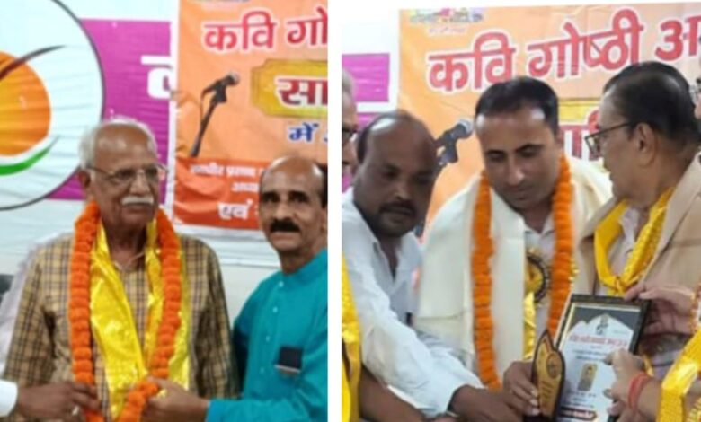 काव्य गोष्ठी एवं सम्मान समारोह में विभिन्न विभूतियों को सम्मानित किया गया