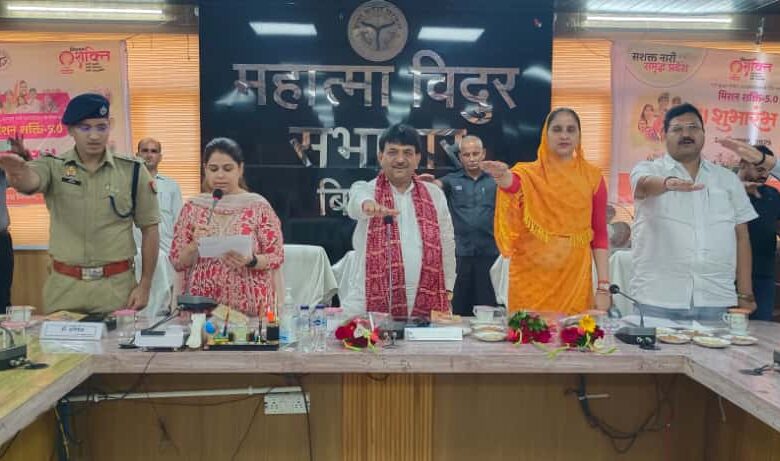 बिजनौर। जिले के प्रभारी मंत्री कपिल देव अग्रवाल की अध्यक्षता में शनिवार को कलेक्ट्रेट सभागार में नारी सुरक्षा, सम्मान एवं स्वालंबन के लिए समर्पित मिशन शक्ति-5.0 कार्यक्रम सम्पन्न हुआ। इस अवसर पर सदर विधायक सूचि चौधरी, भाजपा जिलाध्यक्ष भूपेंद्र सिंह चौहान, जिलाधिकारी जसजीत कौर, पुलिस अधीक्षक अभिषेक झा, अपर जिलाधिकारी प्रशासन विनय कुमार सिंह, डिप्टी कलेक्टर/ जिला सूचना अधिकारी हर्ष चावला सहित अन्य विभागीय अधिकारी एवं जन प्रतिनिधि मौजूद थे।