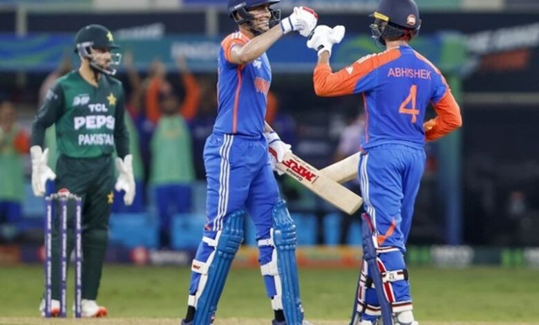 अभिषेक ने लेग स्पिनर अबरार अहमद (42 रन पर एक विकेट) का स्वागत लगातार गेंदों पर चौके और छक्के के साथ किया। फिर राऊफ की गेंद पर दो रन के साथ पांचवें ओवर में टीम के रनों का अर्धशतक पूरा किया। गिल ने छठे ओवर में अयूब पर दो चौके मारे, अभिषेक ने भी चौका जड़ा। अभिषेक ने अगले ओवर में अबरार पर दो छक्के मारे और इस दौरान लॉन्ग आॅन पर फखर जमां ने उनका कैच भी टपकाया। उन्होंने अयूब पर चौके के साथ 24 गेंद में अर्धशतक पूरा किया। अभिषेक और गिल ने सिर्फ नौवें ओवर में स्कोर 100 के पार पहुंचा दिया।