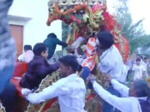 अमरोहा में दूल्हे को बग्गी से खींचकर पीटा,
