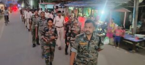 मेहरमा। शारदीय नवरात्र के बीच पूरा जिला भक्तिमय माहौल में डूबा हुआ है। शहर से लेकर गांव तक दुर्गा पूजा की धूम है। लेकिन इसी बीच सुरक्षा के मोर्चे पर प्रशासन ने भी अपनी ताकत दिखा दी है। दुर्गा पूजा भक्ति के इस पर्व को शांति और सौहार्द के साथ संपन्न कराने के लिए प्रशासन भी पूरी तरह से तैयार है। बलबड्डा, महागामा, मेहरमा व ठाकुरगंगटी थाना क्षेत्रों में फ्लैग मार्च निकालकर पुलिस ने साफ कर दिया कि सुरक्षा व्यवस्था चाक-चौबंद है। महागामा में अनुमंडल पुलिस पदाधिकारी चंद्रशेखर आजाद, जबकि बलबड्डा में थाना प्रभारी अमित मरकी ने जवानों के साथ चौक-चौराहों और पूजा पंडालों का भ्रमण किया। फ्लैग मार्च के दौरान श्रद्धालुओं से अपील की गई कि वे पूजा के दौरान शांति बनाए रखें और सहयोग करें। पुलिस जवानों ने न केवल सुरक्षा का भरोसा दिया, बल्कि यह संदेश भी दिया कि भक्त मां दुर्गा की आराधना निश्चिंत होकर कर सकते हैं। थाना प्रभारी ने बताया कि दुर्गा पूजा के दौरान शांति बनाए रखना प्रशासन की प्राथमिकता है। इसके लिए लगातार गश्त और निगरानी की जा रही है। उन्होंने कहा, फ्लैग मार्च का मकसद यही है कि लोग यह महसूस करें कि प्रशासन पूरी तरह सतर्क है और किसी भी तरह की शरारत या कानून-व्यवस्था से खिलवाड़ बर्दाश्त नहीं किया जाएगा।