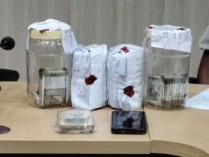 गिरफ्तार आरोपियों के कब्जे से ₹98,000/- नगद तथा 2 मोबाइल फोन एवं घटना मे प्रयुक्त एक मोटरसाइकिल बरामद ।