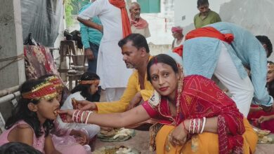 पथरगामा बड़ी दुर्गा मंदिर में नवमी पर कन्याओं को कराया गया पूजन व भोजन