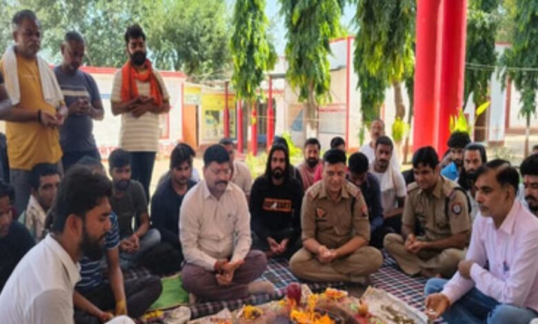 मथुरा जिला कारागार में पहली बार शारदीय नवरात्रि पर्व का विशेष रूप से धार्मिक आस्था, अनुशासन और सांस्कृतिक समरसता के मनाया गया। नौ दिनों तक चले आयोजन में बंदियों ने भक्ति और आत्मचिंतन के वातावरण में भागीदारी निभाई। जेल में 350 महिला पुरुष बंदियों ने व्रत रखा। जेल प्रशासन ने उन्हें जेल मैनुअल के हिसाब से व्रत में प्रयोग होने वाला फलाहार दिया। जेल अधीक्षक अंशुमन गर्ग ने बताया कि जेल में बंदियों की मांग पर पहली बार नवरात्र में माता रानी की मूर्ति स्थापित की गई। पूजा स्थल को आकर्षक रूप से सजाया गया, जहां सुबह-शाम आरती, कीर्तन और दुर्गा सप्तशती के पाठ का आयोजन हुआ। कारागार प्रशासन ने एक रचनात्मक योजना के तहत प्रत्येक बैरक को एक-एक दिन सौंपा गया, जिस दिन उस बैरक के बंदियों द्वारा पूजा-अर्चना, भजन-कीर्तन और विशेष आरती का आयोजन किया गया। बंदियों ने पूरी निष्ठा और श्रद्धा से अपने-अपने दायित्वों का निर्वहन किया, जिससे पूरे वातावरण में आध्यात्मिक ऊर्जा का संचार हुआ। नवरात्रि पर्व का समापन विजयादशमी पर हर्षोल्लास के साथ हुआ। अंतिम दिन हवन के साथ विशेष पूजा-अर्चना के बाद समस्त बंदियों को प्रसाद वितरित किया गया। इस अवसर पर जेल अधीक्षक सहित कई अधिकारियों ने उपस्थित रहकर आयोजन की सराहना की और बंदियों को धार्मिक आयोजनों के माध्यम से आत्मचिंतन और सुधार की प्रेरणा लेने का संदेश दिया। कारागार प्रशासन की इस पहल को न केवल धार्मिक आयोजन के रूप में देखा जा रहा है, बल्कि यह बंदियों के मानसिक और आध्यात्मिक विकास की दिशा में एक सकारात्मक प्रयास भी माना जा रहा है। इससे बंदियों में आत्म अनुशासन, आपसी सहयोग और समाज की मुख्यधारा में पुनः लौटने की प्रेरणा मिलेगी।