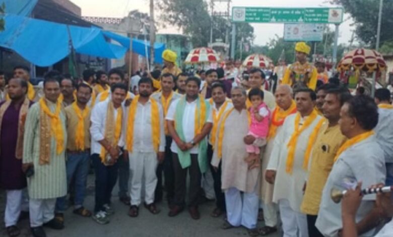 मथुरा। बलदेव में अग्रकुल प्रवर्तक महाराजा श्रीअग्रसेन जयंती महोत्सव के तहत कस्बे में महाराजा अग्रसेन की शोभायात्रा निकाली गई। अग्रवाल समाज समिति के तत्वावधान में अग्र युवा मंडल द्वारा अग्रवाल सेवा सदन से शोभायात्रा निकाली गई। जगह-जगह पुष्प वर्षा व आरती उतार कर शोभायात्रा का स्वागत किया गया। शोभायात्रा में अठारह राजकुमारों के साथ एक दर्जन झांकियां आकर्षण का केंद्र रहीं। शुभारंभ फतेहपुरसीकरी विधानसभा क्षेत्र से विधायक बाबूलाल चौधरी व ब्लाॅक प्रमुख प्रतीक सिंह भरंगर ने आरती उतार कर किया। गणेश, लक्ष्मी, राधाकृष्ण, कृष्ण-बलराम, सरस्वती, भोले बाबा आदि की झाकियों ने मन मोह लिया। इस दौरान अध्यक्ष विनय अग्रवाल, रोहित मोदी, प्रवीण मोदी, रिंकू सेठ, सुरेंद्र चौधरी, करण अग्रवाल, मयंक अग्रवाल, तरुण गोयल, सुदीप बंसल, विवेक गोयल आदि , तुषार गोयल, अन्नू बंसल, मयंक अग्रवाल, केशव गोयल, प्रिंस अग्रवाल, अंकुश बंसल, निलेश मित्तल, दिलीप गोयल, पंकज मित्तल, रामकुमार मित्तल, बसंत लाल, सुनील गर्ग, सोनू अग्रवाल, मुकेश अग्रवाल, मोनू अग्रवाल आदि मौजूद रहे।