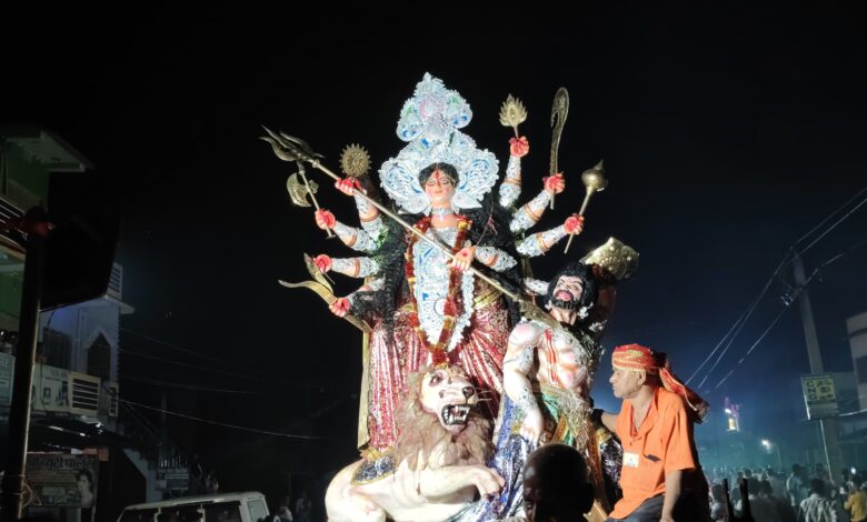 पथरगामा बड़ी दुर्गा मंदिर से मां दुर्गा को नम आंखों से दी गई विदाई