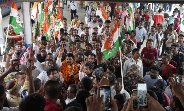 धनबाद। अखिल भारतीय कांग्रेस कमेटी के द्वारा सोमवार को धनबाद जिला कांग्रेस कमेटी के पुनः नियुक्त अध्यक्ष के धनबाद आगमन पर कांग्रेस नेताओं और कार्यकर्ताओं के ओर से भव्य स्वागत किया गया, संतोष कुमार सिंह ब्लैक डायमंड एक्सप्रेस से आगमन के दौरान कुमारडूबी स्टेशन पर सैकड़ो समर्थकों ने स्वागत किया, उसके पश्चात 11:00 बजे धनबाद पहुंचे , जहां पर स्टेशन के 2 हजार से अधिक कार्यकर्ताओं तथा नेताओं ने अपना प्यार और आशीर्वाद देने के लिए पधारे । कांग्रेस कार्यकर्ताओं ने ढोल,बाजा, नगाड़ा के साथ जोरदार स्वागत किया, स्टेशन पर महिलाओं के द्वारा पारंपरिक नृत्य का भी आयोजन किया गया ,उसके पश्चात विनोद बिहारी महतो जी की मूर्ति पर जिला अध्यक्ष के द्वारा माल्यार्पण किया गया तथा भव्य रोड शो करते हुए डीआरएम चौक पहुंचे और वहां पर संविधान निर्माता बाबा साहब भीमराव अंबेडकर जी को माल्यार्पण किया गया , इसके बाद रणधीर राम चौक तक भव्य रोड शो हुआ और रणधीर वर्मा चौक पर भारी आतिशबाजी हुआ । इसके पश्चात गांधी सेवा सदन में महात्मा गांधी जी को माल्यार्पण करके गांधी सेवा सदन मैं संकल्प सभा का आयोजन किया गया, संकल्प सभा मैं जिला के कोने-कोने से महिलाओं और युवाओं की भारी भीड़ उमड़ी थी, संकल्प सभा में अपना आशीर्वाद देने के लिए कांग्रेस के सैकड़ो सीनियर नेता और वरिष्ठ कांग्रेस जन पधारे थे और जिला अध्यक्ष संतोष कुमार सिंह ने सभी लोगों का पैर छूकर आशीर्वाद लिया । जिला अध्यक्ष संतोष कुमार सिंह ने संकल्प सभा में कांग्रेस नेताओं तथा कार्यकर्ताओं को संबोधित करते हुए कहा कि धनबाद के कांग्रेस कार्यकर्ताओं ने अपना प्यार और आशीर्वाद देकर मुझे पुनः जिला अध्यक्ष के पद पर बैठाया है, पार्टी के शीर्ष नेतृत्व ने मुझ पर जो जिम्मेदारी सौंपी है ,मैं पार्टी के शीर्ष नेतृत्व से तथा धनबाद जिला के एक-एक कांग्रेस के नेताओं और कार्यकर्ताओं से वादा करता हूं कि आपके प्यार और आशीर्वाद का मैं ऋणी हूं और मेरे जीवन का एक-एक क्षण कांग्रेस की सेवा में समर्पित है।