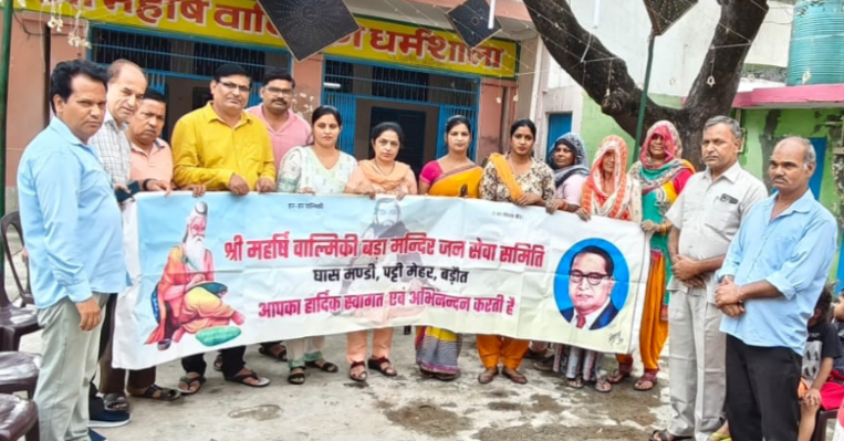 बड़ौत (बागपत) : घास मंडी पट्टी मेहर स्थित महर्षि बाल्मीकि मंदिर में बाल्मीकि जयंती के अवसर पर सारथी वेलफेयर फाउंडेशन द्वारा एक विशेष कार्यक्रम का आयोजन किया गया। कार्यक्रम में श्रद्धालुओं और स्थानीय नागरिकों की उपस्थिति ने वातावरण को भक्ति और उत्सव से सराबोर कर दिया। कार्यक्रम की शुरुआत महर्षि वाल्मीकि जी के चित्र पर माल्यार्पण के साथ की गई। उपस्थित जनों ने रामायण के रचयिता महर्षि वाल्मीकि को श्रद्धांजलि अर्पित की और उनके जीवन से प्रेरणा लेने का संकल्प लिया। इस अवसर पर सचिव अनिल अरोरा, विवेक चौधरी, सचिन खोखर, ममता अरोरा, आशा ग्रोवर, मोनिका (महिला कल्याण विभाग), प्रोजेक्ट कोऑर्डिनेटर चाइल्ड हेल्प लाइन वंदना गुप्ता सहित कई गणमान्य लोग मौजूद रहे। वक्ताओं ने महर्षि वाल्मीकि के जीवन, उनके आदर्शों और समाज में उनकी प्रेरणादायक भूमिका पर प्रकाश डाला। महिला कल्याण विभाग और चाइल्ड हेल्प लाइन टीम की ओर से बाल संरक्षण और सामाजिक जागरूकता से जुड़ी जानकारियां भी साझा की गईं, जिससे कार्यक्रम केवल धार्मिक न होकर सामाजिक रूप से भी महत्वपूर्ण बन गया। कार्यक्रम के अंत में सभी श्रद्धालुओं को प्रसाद वितरण किया गया और बाल्मीकि समाज के लोगों ने एकता और समरसता का संदेश दिया।