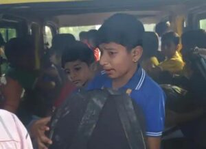 अमरोहा में गन्ने के खेत में घुसी स्कूली वैन, बच्चों में चीखपुकार