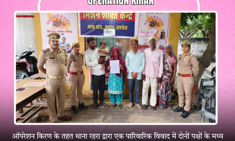 अमरोहा जिले में एसपी अमित कुमार आनंद के निर्देश पर ऑपरेशन किरण के तहत आपसी मतभेद के चलते अलग हुए पति-पत्नी के रिश्ते को बचाने की पहल का असर लगातार देखने को मिल रहा है l शनिवार को ऐसे ही दो जोड़ों को थाना रहरा पुलिस ने अलग होने से बचाया और दोनों जोड़ों के आपसी मतभेद खत्म कराकर दोनों को साथ में घर भेजा l वही पुलिस टीम द्वारा किए जा रहे l इस कार्य की आमजन में खूब चर्चा है वही लोग पुलिस के इस कार्य की प्रशंसा कर रहे हैं l