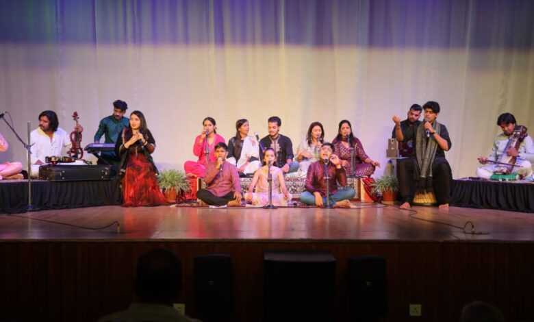 बरेलीः एसआरएमएस रिद्धिमा में रविवार (12 अक्टूबर 2025) शाम संगीतमय संध्या में कबीर के साहित्य पर ‘निर्गुण के कबीर’ का आयोजन हुआ। इसमें रिद्धिमा के गायन गुरु, विद्यार्थियों और अतिथि गायकों ने कबीर की वाणी को अपने स्वर दिए। गायन गुरु सात्विक मिश्रा ने राग खमाज पर ‘बोलो ना गिरधारी’ और राग चारुकेशी में ‘झीनी झीनी बीनी चदरिया’ को अपने स्वर में प्रस्तुत किया। गायन के विद्यार्थियों अंशुमा, शालिनी पांडेय, अर्णव कन्नौजिया, अनुग्रह, नीलम, गीतू, सार्थक और गरिमा ने कबीर रचित ‘सामाजिक कुरीतियों के दोहों’ को श्रोताओं के सम्मुख रखा। गायन गुरु प्रियंका ग्वाल ने विद्यार्थियों के साथ राग यमन में ‘माया तजी न जाय’ और गुरु सात्विक मिश्रा के साथ राग मालकोस में ‘गुरु महिमा के दोहे’ प्रस्तुत किए। प्रियंका ने राग देश पर ‘भला हुआ मोरी गगरी फूटी’ को भी अपने स्वर दिए। अतिथि गायक डा. रीता शर्मा ने कबीर की रचना ‘हरि भजन को मन रे’ और अतिथि गायक इंदू परडल ने राग भूपाली में ‘मन लागो यार फकीरी में’ गाकर श्रोताओं की तालियां हासिल कीं। इंस्ट्रूमेंट गुरु सूर्यकांत चौधरी (वायलिन), अनुग्रह सिंह (की-बोर्ड), सुरेंद्र सिंह (परकसन), विशेष सिंह (गिटार), ऋषभ आशीष पाठक (पखावज), दीपकांत जौहरी (तबला), सीमा (सितार), पवन भारद्वाज (हारमोनियम), जनार्दन भारद्वाज (बांसुरी), अनीश मिश्रा (सारंगी) ने वाद्ययंत्रों की प्रस्तुति से कार्यक्रम में अपनी उपस्थिति दर्ज कराई। कार्यक्रम का संचालन आशीष कुमार ने किया। इस अवसर पर एसआरएमएस ट्रस्ट के संस्थापक व चेयरमैन देव मूर्ति जी, आशा मूर्ति जी, आदित्य मूर्ति जी, ऋचा मूर्ति जी, उषा गुप्ता जी, डा.एमएस बुटोला, डा.प्रभाकर गुप्ता, डा.अनुज कुमार, डा.शैलेश सक्सेना सहित शहर के गण्यमान्य लोग मौजूद रहे।
