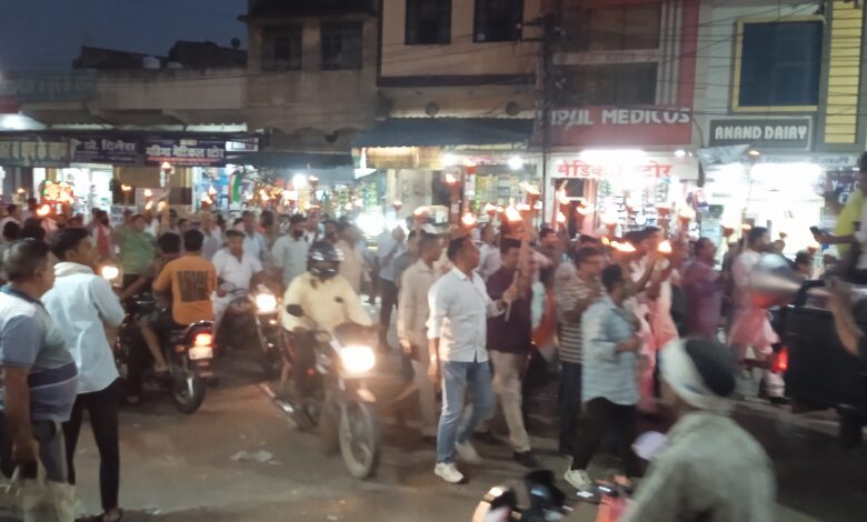 खैरथल। जिला बचाओं संघर्ष समिति ने रविवार को शहीद भगतसिंह चौक से लक्ष्मीनारायण मंदिर तक मशाल जुलूस निकाला.