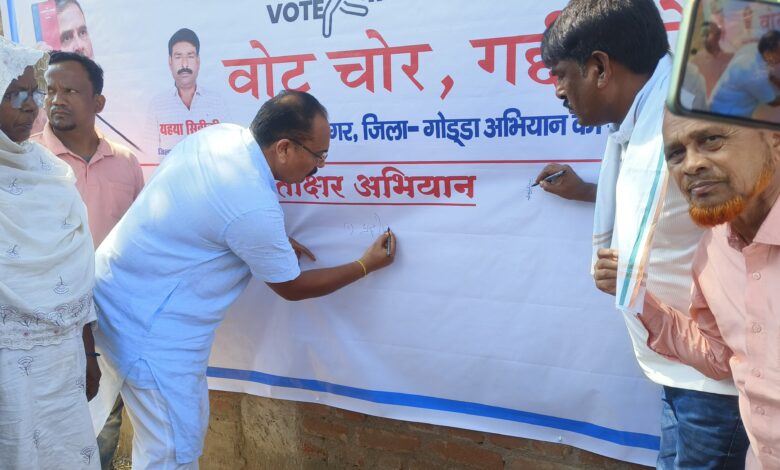 वोट चोर गद्दी छोड़ो” हस्ताक्षर अभियान चला