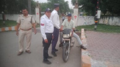 बिना हेलमेट पहने 07 पुलिस कर्मियों के काटे गये चालान
