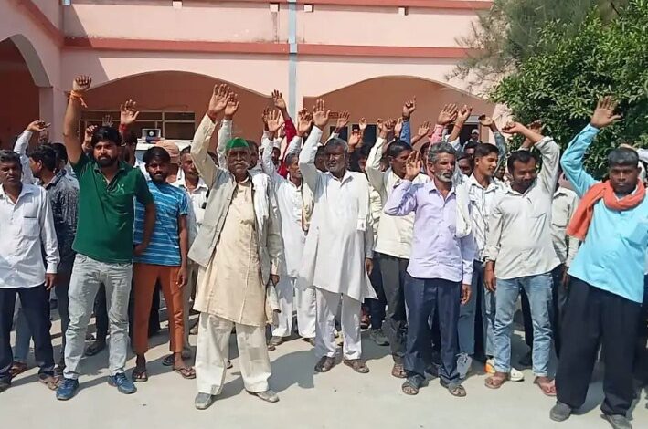 ग्रामीणों ने राशन डीलर पर आरोप लगाते हुए किया प्रदर्शन