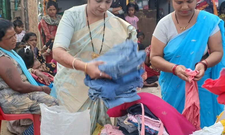 महिला युवा वाहिनी ने पारधीढाना में दीपोत्सव के पूर्व किया सेवा कार्य
