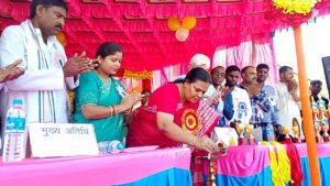 मेहरमा : एस.आर.टी. कॉलेज, धमड़ी में आज दो दिवसीय विश्वविद्यालय स्तरीय अंतरमहाविद्यालय खो-खो प्रतियोगिता 2025 का विधिवत शुभारंभ किया गया। मुख्य अतिथि के रूप में झारखंड सरकार की ग्रामीण विकास एवं पंचायती राज मंत्री माननीय दीपिका पांडेय सिंह जी तथा मेहरमा उत्तरी जिला परिषद सदस्य ज्योति कुमारी जी उपस्थित रहीं। दोनों अतिथियों ने संयुक्त रूप से दीप प्रज्ज्वलित कर एवं फीता काटकर प्रतियोगिता का उद्घाटन किया। कार्यक्रम में कॉलेज के प्राचार्य, प्रोफेसरगण, शिक्षण-गैर शिक्षण कर्मी, छात्र-छात्राएँ एवं बड़ी संख्या में स्थानीय दर्शक मौजूद थे। मंत्री दीपिका पांडेय सिंह ने खिलाड़ियों को संबोधित करते हुए कहा कि खेल न सिर्फ शारीरिक विकास का माध्यम है, बल्कि यह टीम भावना, अनुशासन और आत्मविश्वास का प्रतीक भी है। सरकार खेलों के प्रोत्साहन और खिलाड़ियों के सम्मान के लिए निरंतर प्रयासरत है।इस दौरान सभी प्रतिभागी टीमों ने मार्च पास्ट करते हुए खेल भावना और जोश का शानदार प्रदर्शन किया। उद्घाटन दिवस पर पुरुष और महिला दोनों वर्गों में रोमांचक मुकाबले खेले गए।कार्यक्रम का संचालन कॉलेज के शारीरिक शिक्षा विभाग द्वारा किया गया। अंत में धन्यवाद ज्ञापन करते हुए कॉलेज प्राचार्य ने अतिथियों एवं खिलाड़ियों के उज्ज्वल भविष्य की शुभकामनाएँ दीं।