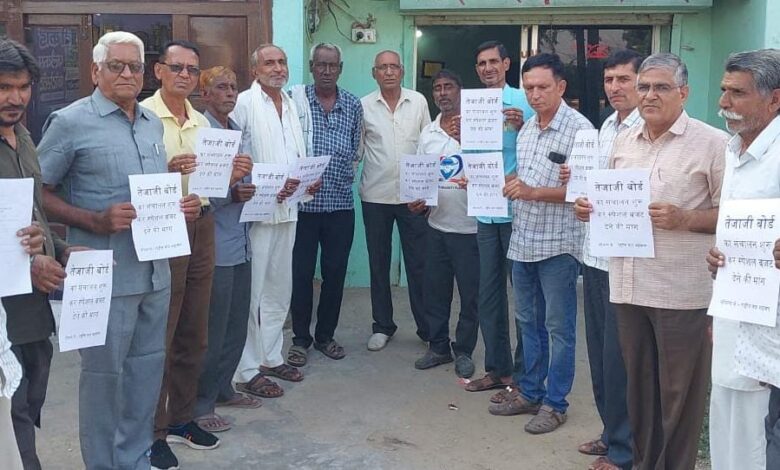 राष्ट्रीय जाट महासंघ ने तेजाजी बोर्ड शुरू करने की मांग को लेकर खेतड़ी नगर में किया प्रदर्शन