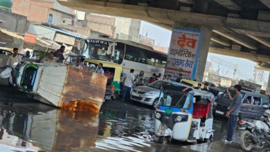 बिना बरसात सड़क पर पानी, गड्ढों में फंसे वाहन