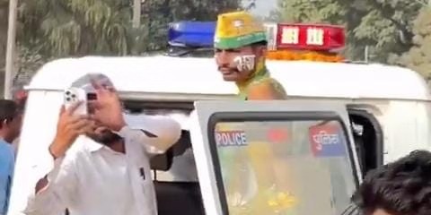 बिहार विधानसभा चुनाव 2025 को लेकर चुनाव आयोग ने राज्य में आदर्श आचार संहिता लागू कर दी है। इसी बीच सोशल मीडिया पर एक वीडियो तेजी से वायरल हो रहा है, जिसमें जनशक्ति जनता दल के नेता तेज प्रताप यादव के नामांकन के दौरान पार्टी कार्यकतार्ओं को एक निजी बोलेरो वाहन पर पुलिस का स्टिकर और सायरन लाइट लगाकर प्रचार करते हुए देखा जा सकता है।