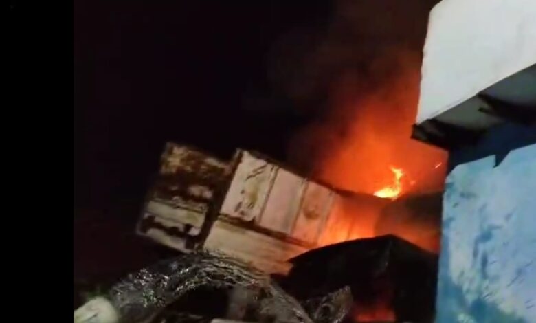 ब्रजघाट पुलिस चौकी में खड़े कबाड़ वाहनों में लगी आग..