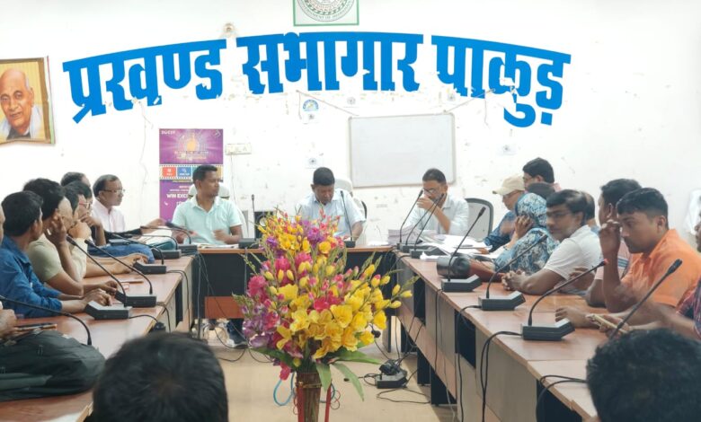 पाकुड़ प्रखण्ड सभागार में प्रखण्ड विकास पदाधिकारी समीर अल्फ्रेड मुर्मू की अध्यक्षता में सरकार द्वारा संचालित विभिन्न योजनाओं के कार्य प्रगति का समीक्षा बैठक आयोजित किया । बैठक में पंचायत सचिव, रोजगार सेवक अन्य समेत प्रखण्ड पंचायत राज पदाधिकारी व प्रखण्ड कार्यक्रम पदाधिकारी ने अपनी सुनिश्चित किया। वही बीडीओ समीर अल्फ्रेड मुर्मू ने संचालित विभिन्न योजनाओं के कार्य प्रगति का समीक्षा किया। उन्होंने मनरेगा, अबुआ आवास, 15वें वित्तीय आयोग, प्रधानमंत्री आवास योजना के कार्य प्रगति का समीक्षा किया। तत्पश्चात उपस्थित सभी कर्मी एवं अधिकारियों को दिशा निर्देश देते हुए ससमय अवधि में ही सभी कार्यों को पूरा करने का निर्देश दिया।