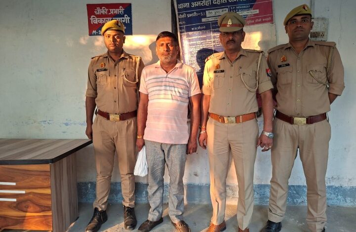 अमरोहा जनपद पुलिस ने कांठ रोड पर हुए किसान भूरे की हत्या के मामले में ₹25,000 के इनामी बदमाश मनोज को गिरफ्तार कर लिया है। यह गिरफ्तारी दिल्ली-मुरादाबाद हाईवे पर मोगा होटल के पास से शुक्रवार रात को की गई।यह घटना बीते 12 अक्टूबर की रात अमरोहा देहात थाना क्षेत्र के कांठ रोड पर हुई थी। शराब पार्टी के दौरान बदमाशों ने हाशमपुर गांव निवासी किसान भूरे पुत्र राम सिंह की गोली मारकर हत्या कर दी थी। पुलिस ने इस मामले में पहले ही तीन अन्य बदमाशों को गिरफ्तार कर जेल भेज दिया था। शेष दो फरार बदमाशों पर अमरोहा के एसपी अमित कुमार आनंद ने दो दिन पूर्व 25-25 हजार रुपये का इनाम घोषित किया था। क्षेत्राधिकारी अवधवान सिंह भदोरिया ने बताया कि गिरफ्तार किया गया बदमाश मनोज पुत्र नेपाल, हाशमपुर गांव का निवासी है। उसे दिल्ली-मुरादाबाद हाईवे पर मोगा होटल के पास से पकड़ा गया। इस हत्याकांड में फरार चल रहे एक अन्य बदमाश गुड्डू की गिरफ्तारी के लिए पुलिस टीमें लगातार दबिश दे रही हैं। पुलिस का कहना है कि उसे भी जल्द ही गिरफ्तार कर लिया जाएगा।