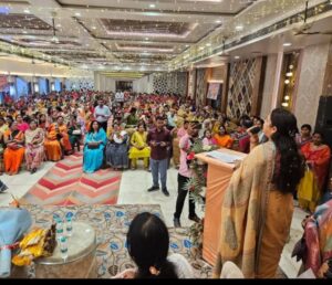 मुरादाबाद। भारतीय जनता पार्टी महिला मोर्चा महानगर के तत्वाधान मे एवं आत्मनिर्भर भारत संकल्प सम्मेलन कार्यक्रम संयोजिका एवं बेटी बचाओ बेटी पढ़ाओ महानगर संयोजिका अल्पना रितेश गुप्ता एवं महानगर महिला मोर्चा महानगर अध्यक्ष एवं कार्यक्रम सह संयोजिका विजय लक्ष्मी पंडित के नेतृत्व में आत्मनिर्भर भारत अभियान के अंतर्गत व्हाइट हाउस बैंकट हाल में महिला मोर्चा के द्वारा आयोजित कार्यक्रम में मुख्य अतिथि एवं मुख्य वक्ता पूर्व राज्यसभा सांसद कांता कदम एवं विशिष्ट अतिथि के रूप में क्षेत्रीय अध्यक्ष वर्षा कौशिक शामिल रही।